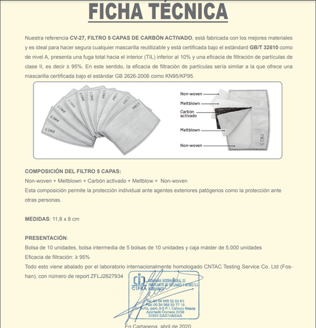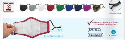 Estas mascarillas han sido realizadas siguiendo la normativa UNE 0065:2020 Mascarillas personalizables reutilizables para adultos. Requisitos de materiales, diseño, confección y uso, siempre que se cambie correctamente el filtro.
