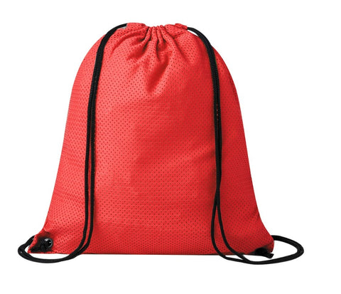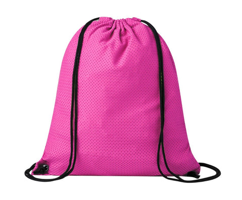 Mochila de cuerdas en suave poliéster, con cuerdas autocierre y argollas metálicas de refuerzo. Disponible en variada gama de colores (color blanco especialmente fabricado para impresión en sublimación).