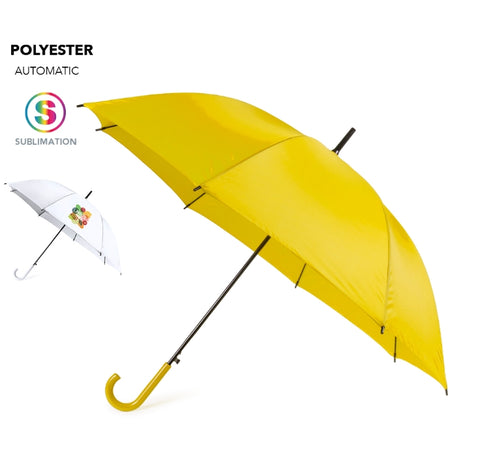 Paraguas de 8 paneles en extensa gama de vivos colores y 107cm de diámetro. De apertura automática, en resistente material poliéster, con varillas metálicas en color negro y mango a juego.