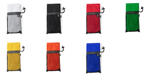 Toalla absorbente de línea nature. Fabricada en RPET de 160g/m2, elaborado a partir de plástico reciclado para así fomentar la reutilización de residuos plásticos y contribuir a la sostenibilidad del planeta. Tamaño 50x100 cm, presentada en funda individual de redecilla RPET con parte trasera lisa y disponible en variada gama de colores. Con distintivo RPET en etiqueta.